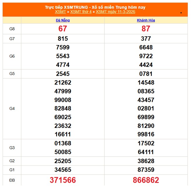 Kết quả xổ số miền Trung ngày 11/3/2026