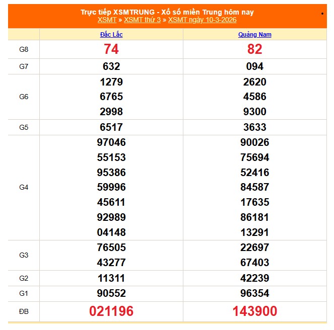 Kết quả xổ số miền Trung ngày 10/3/2026