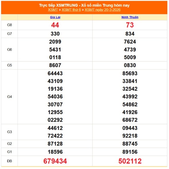 Kết quả xổ số miền Trung ngày 20/3/2026