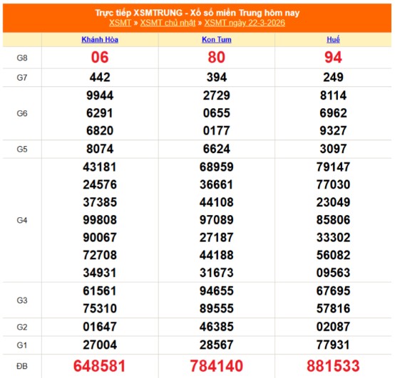 Kết quả xổ số miền Trung (XSMT) ngày 23/3/2026 được quay số mở thưởng vào lúc 17h15 theo hình thức quay lồng cầu truyền thống. Hội đồng giám sát của từng công ty xổ số kiến thiết tại các tỉnh đảm bảo quá trình quay thưởng diễn ra công khai, minh bạch.