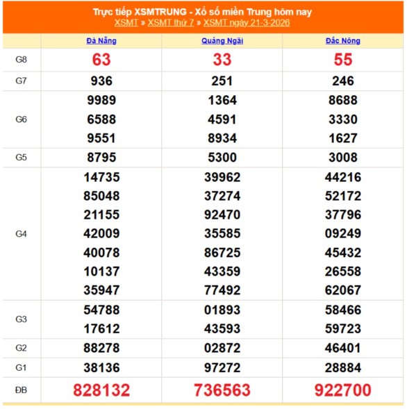 Kết quả xổ số miền Trung ngày 21/3/2026