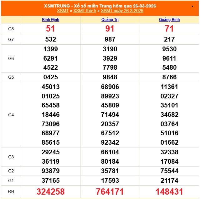 Kết quả xổ số miền Trung ngày 26/3/2026