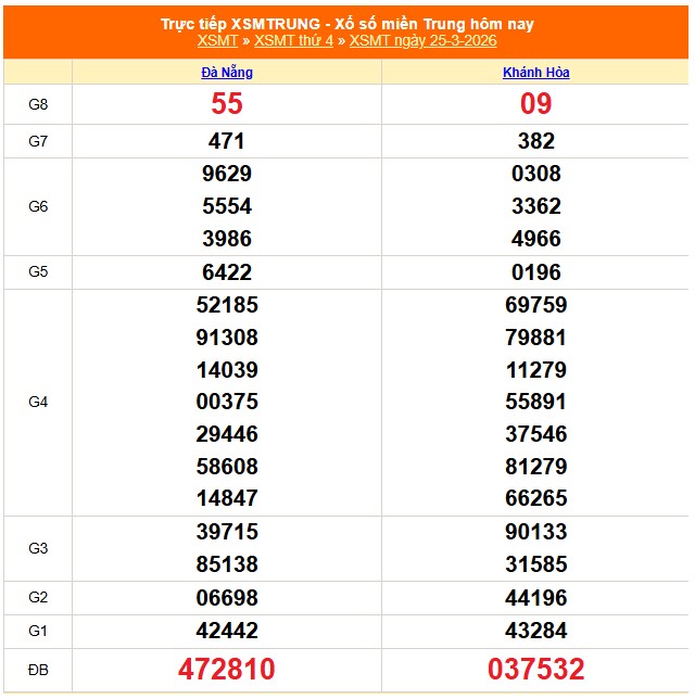 Kết quả xổ số miền Trung ngày 25/3/2026