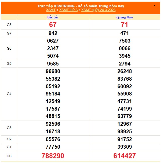 Kết quả xổ số miền Trung ngày 24/3/2026