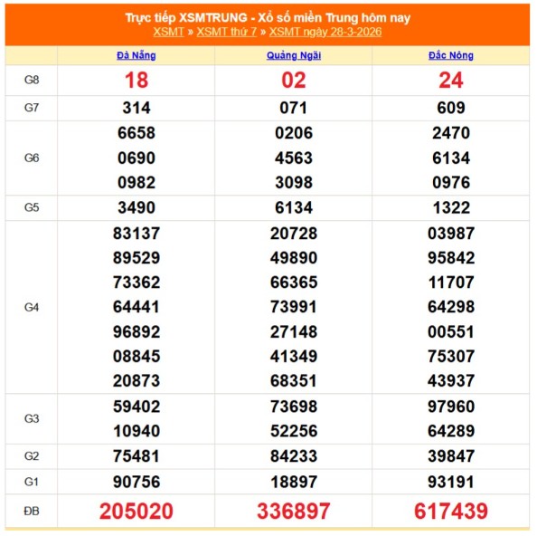 Kết quả xổ số miền Trung ngày 28/3/2026