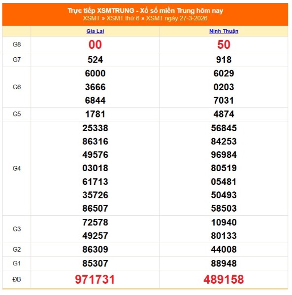 Kết quả xổ số miền Trung ngày 27/3/2026