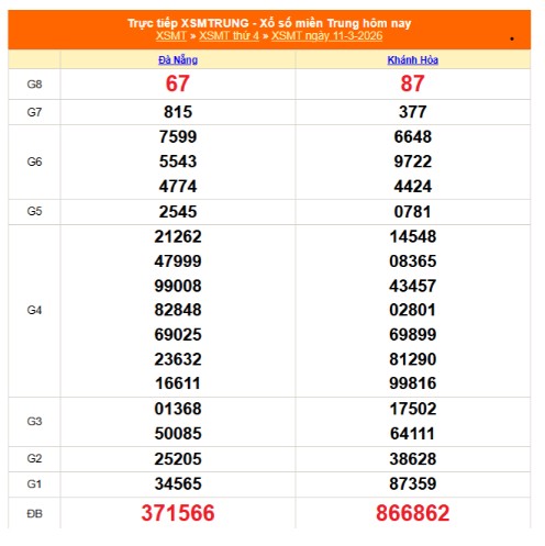 Kết quả xổ số miền Trung ngày 11/3/2026