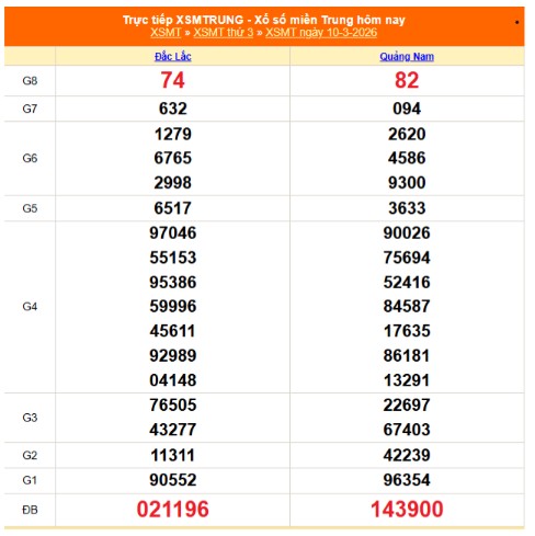 Kết quả xổ số miền Trung ngày 10/3/2026