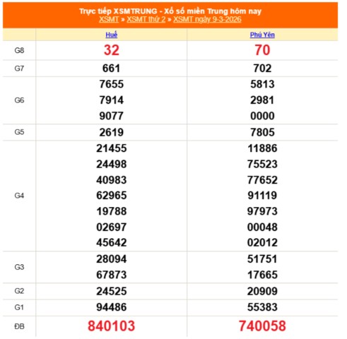 Kết quả xổ số miền Trung ngày 9/3/2026