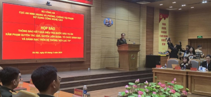Sáng 5/3, Cục An ninh mạng và phòng chống tội phạm sử dụng công nghệ cao (Bộ Công an) phối hợp Công an tỉnh Hưng Yên công bố kết quả điều tra bước đầu liên quan đến vụ án xâm phạm quyền tác giả, quyền liên quan, tổ chức đánh bạc và đánh bạc trên hệ thống website “Xôi Lạc TV”.