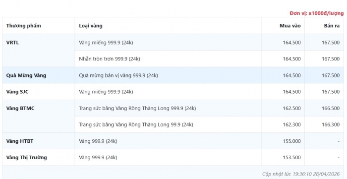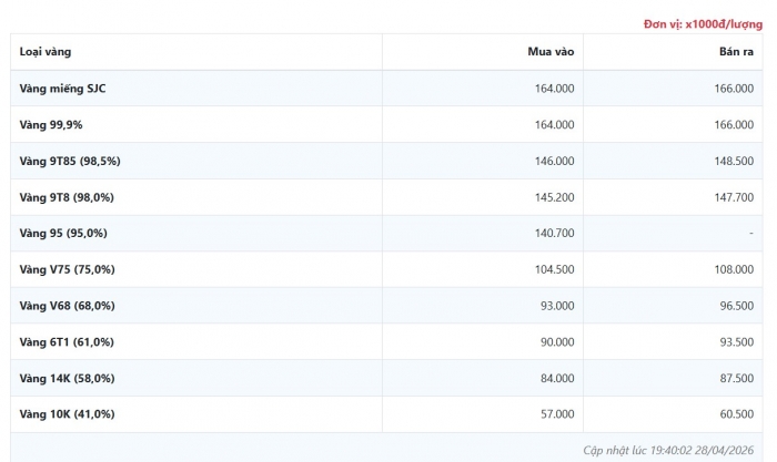 Giá vàng hôm nay 28/4/2026: Vàng miếng SJC neo cao hiếm thấy