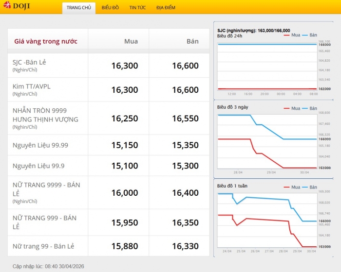 Giá vàng hôm nay 30/4: Bảng giá vàng SJC và nhẫn 9999 diễn biến đầy khó hiểu, thế giới vượt mốc 4.600 USD