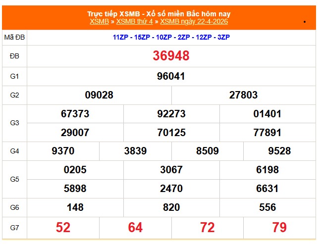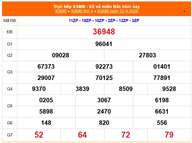 Kết quả Xổ số miền Bắc ngày 22/4/2026