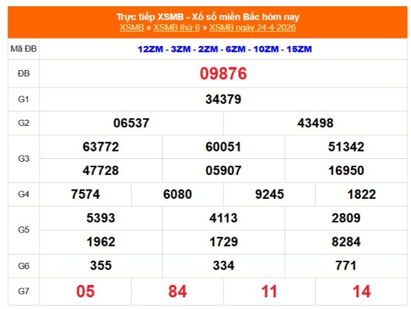 Kết quả Xổ số miền Bắc ngày 24/4/2026