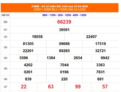 Kết quả Xổ số miền Bắc ngày 23/4/2026