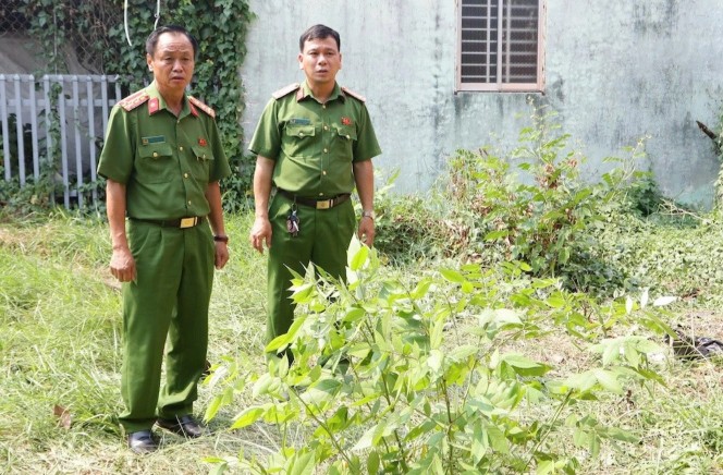 Đại tá Trà Quang Thanh, Phó Giám đốc Công an tỉnh Đồng Tháp, (bìa trái) kiểm tra, chỉ đạo tại hiện trường (Ảnh: CTV)