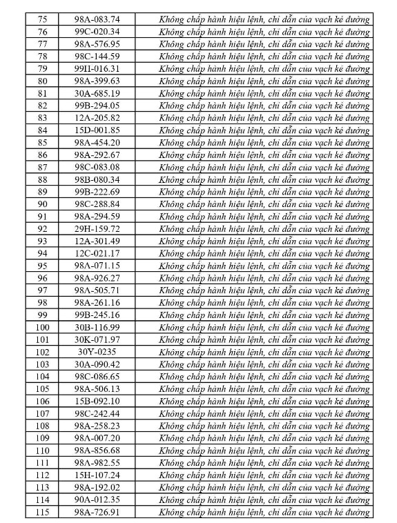 Lực lượng CSGT tỉnh Bắc Ninh vừa công bố danh sách 281 phương tiện vi phạm giao thông bị phạt nguội trong tuần qua, trong đó lỗi vượt đèn đỏ và không chấp hành vạch kẻ đường chiếm tỷ lệ lớn. Người vi phạm được yêu cầu nhanh chóng tra cứu, nộp phạt theo Nghị định 168/2024/NĐ-CP để tránh bị xử lý bổ sung.