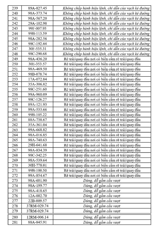 Danh sách phạt nguội mới nhất tuần qua: 281 phương tiện bị gọi tên, lỗi vượt đèn đỏ chiếm áp đảo!