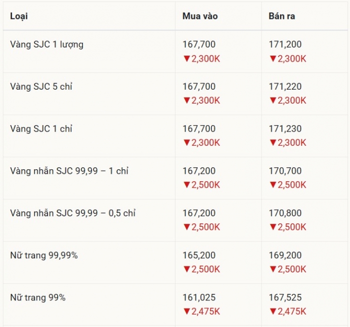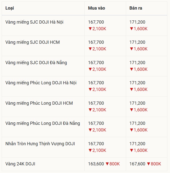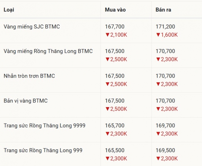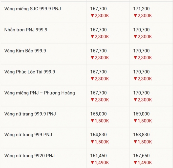 Ở phân khúc vàng nhẫn, vàng 9999 và vàng 24K, các thương hiệu cũng có động thái giảm nhẹ. Giá vàng nhẫn tròn trơn được giao dịch phổ biến trong khoảng 179,7 – 183 triệu đồng/lượng, tùy từng doanh nghiệp và thời điểm giao dịch. So với những ngày trước, mức giảm không quá lớn nhưng cho thấy xu hướng điều chỉnh đang diễn ra trên diện rộng.
