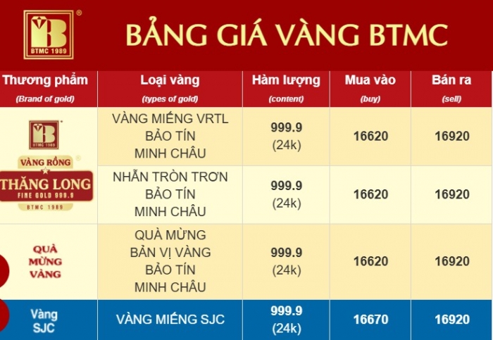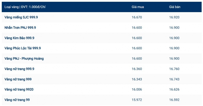 Tại thời điểm khảo sát, giá vàng miếng SJC được các doanh nghiệp lớn điều chỉnh giảm đáng kể so với phiên trước. Nhiều hệ thống niêm yết giá bán ra đã lùi xuống dưới ngưỡng 170 triệu đồng/lượng, đánh dấu sự phá vỡ mốc tâm lý quan trọng của thị trường.