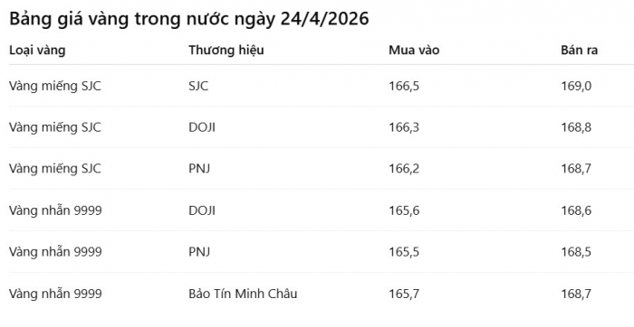 Giá vàng trong nước hôm nay 24/4 mới nhất