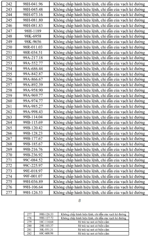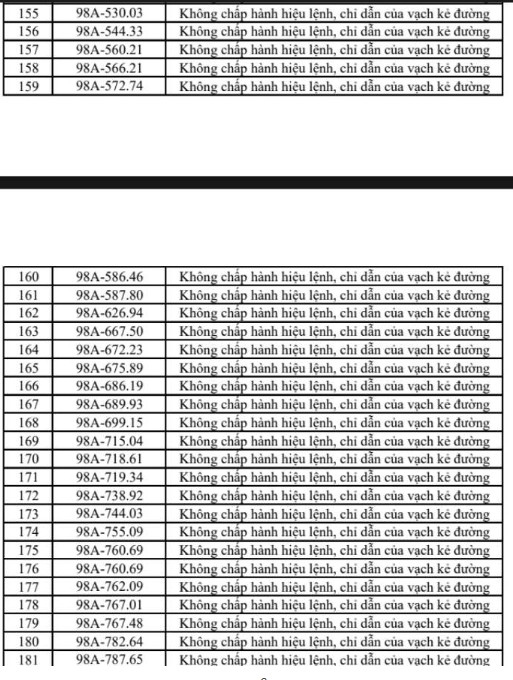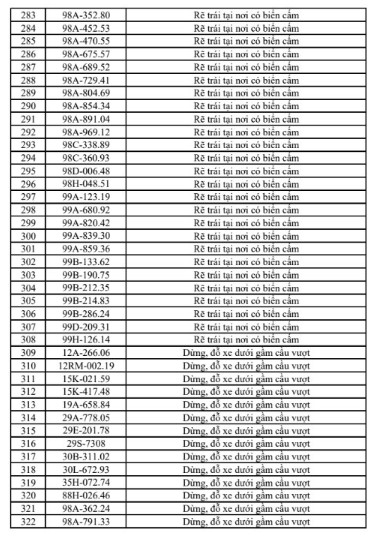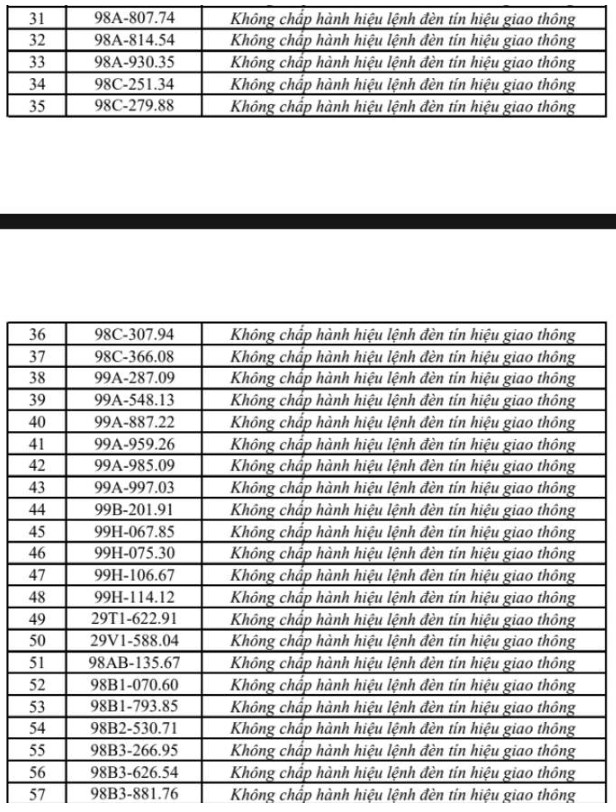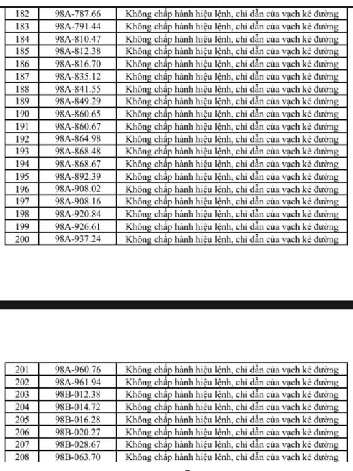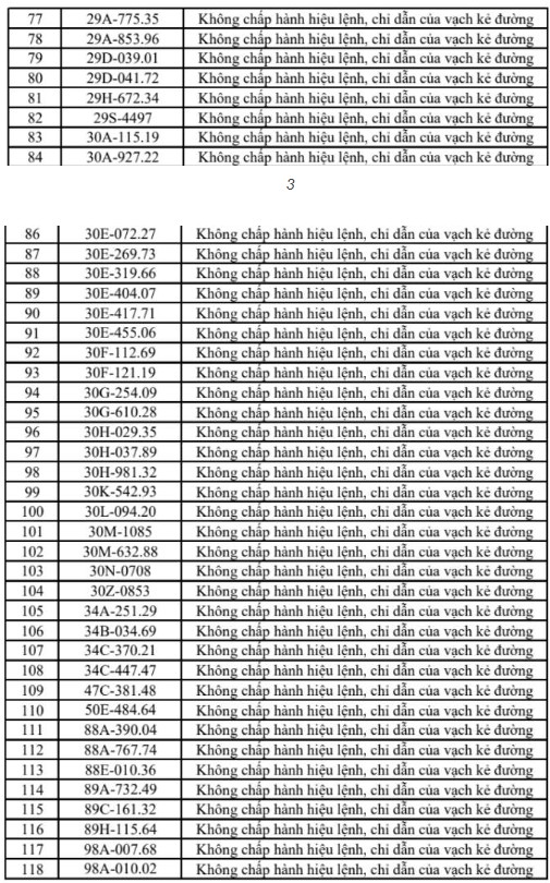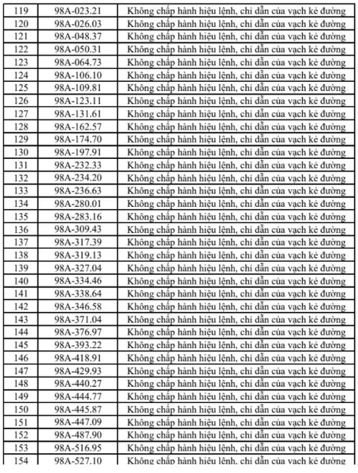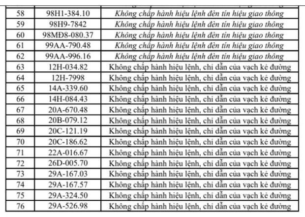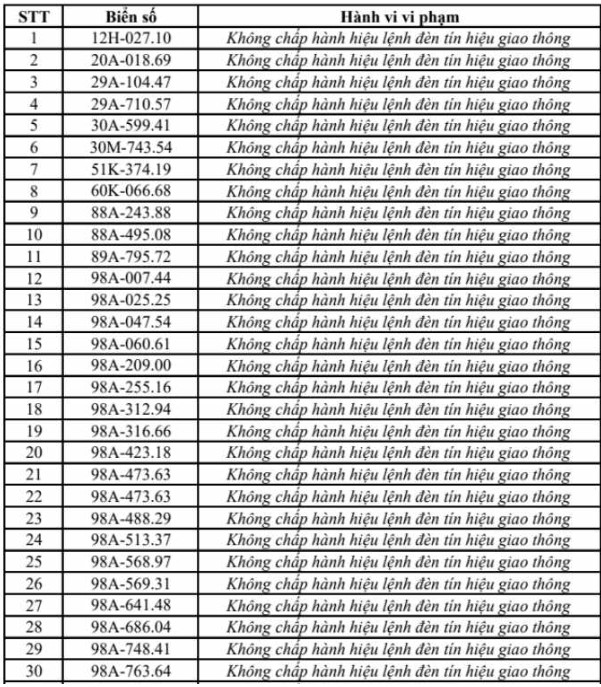 Theo cơ quan chức năng, các lỗi vi phạm chủ yếu bao gồm vượt đèn đỏ, chạy quá tốc độ, đi sai làn đường, dừng đỗ không đúng quy định và không chấp hành hiệu lệnh giao thông. Danh sách biển số các phương tiện vi phạm được đăng tải công khai dưới dạng hình ảnh để người dân tra cứu, đồng thời yêu cầu các chủ phương tiện liên quan sớm đến làm việc và nộp phạt.