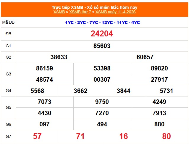Kết quả Xổ số miền Bắc ngày 11/4/2026