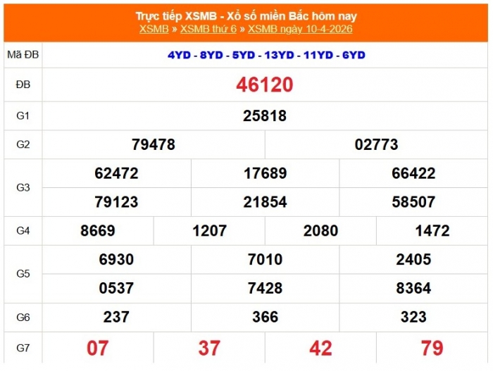 Kết quả Xổ số miền Bắc ngày 10/4/2026