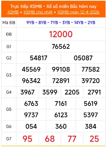 Kết quả Xổ số miền Bắc ngày 12/4/2026