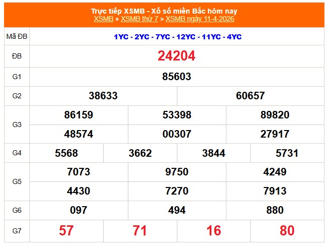 Kết quả Xổ số miền Bắc ngày 11/4/2026