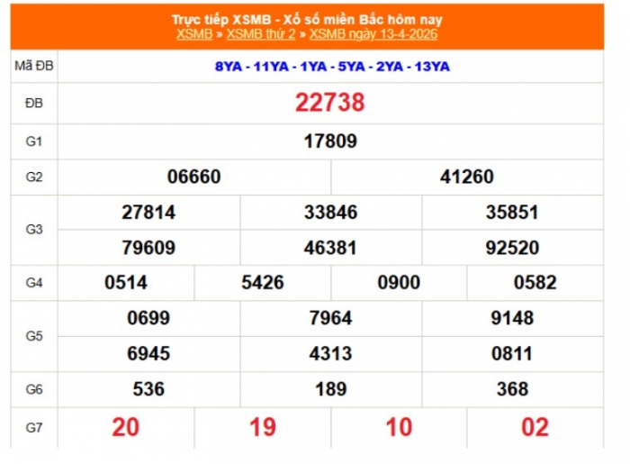 Kết quả Xổ số miền Bắc ngày 13/4/2026