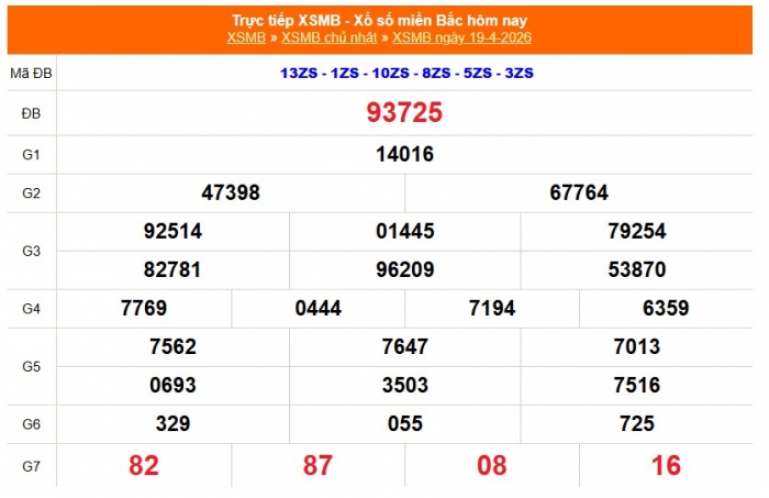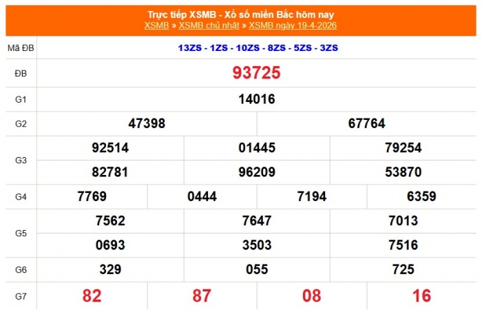 Kết quả Xổ số miền Bắc ngày 19/4/2026