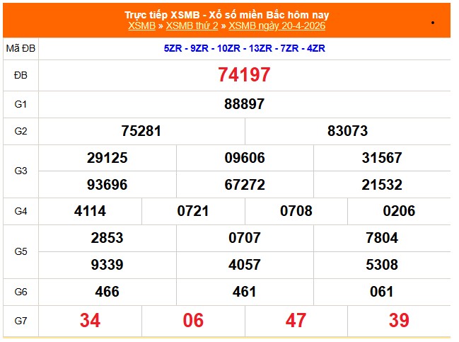 Kết quả Xổ số miền Bắc ngày 20/4/2026