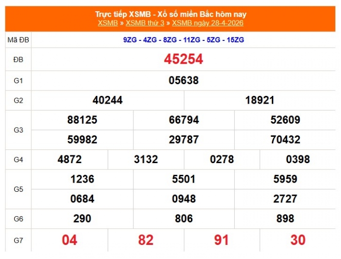 Kết quả Xổ số miền Bắc ngày 28/4/2026