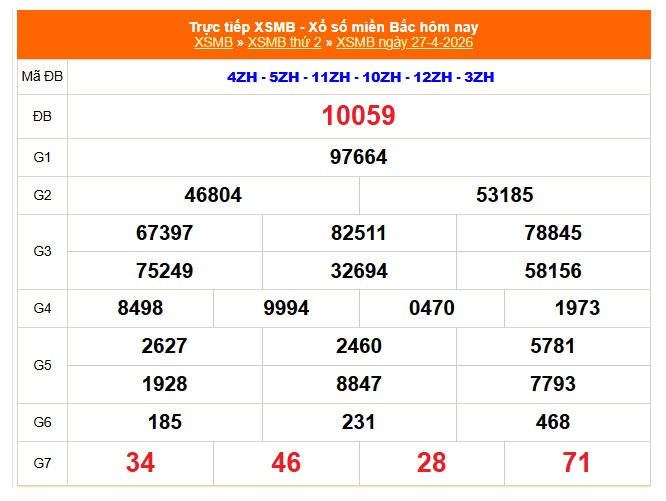 Kết quả Xổ số miền Bắc ngày 27/4/2026