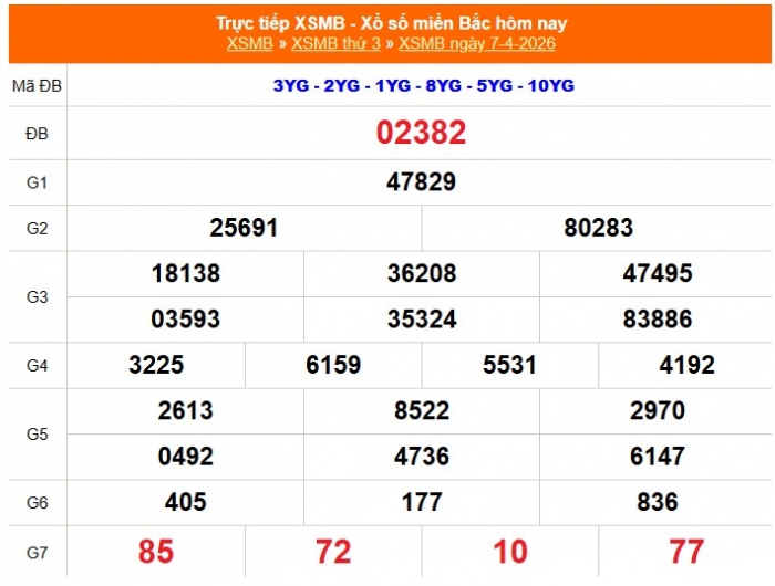 Kết quả Xổ số miền Bắc ngày 7/4/2026