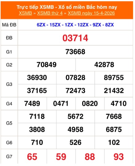 Kết quả Xổ số miền Bắc ngày 15/4/2026