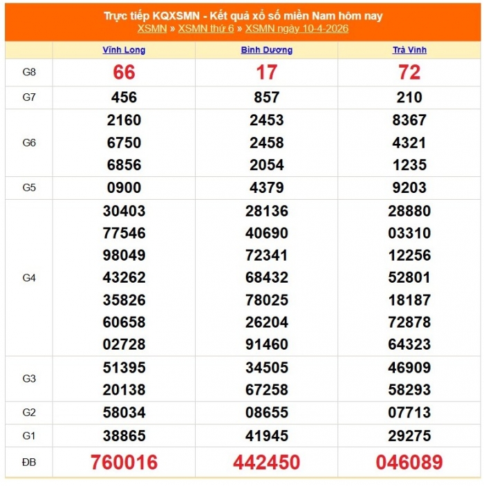Kết quả xổ số miền Nam ngày 10/4/2026