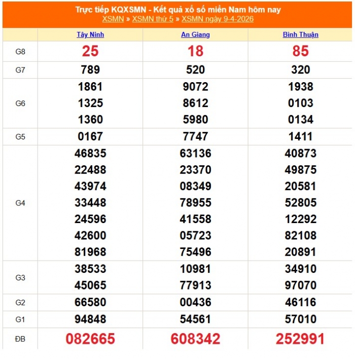Kết quả xổ số miền Nam ngày 9/4/2026