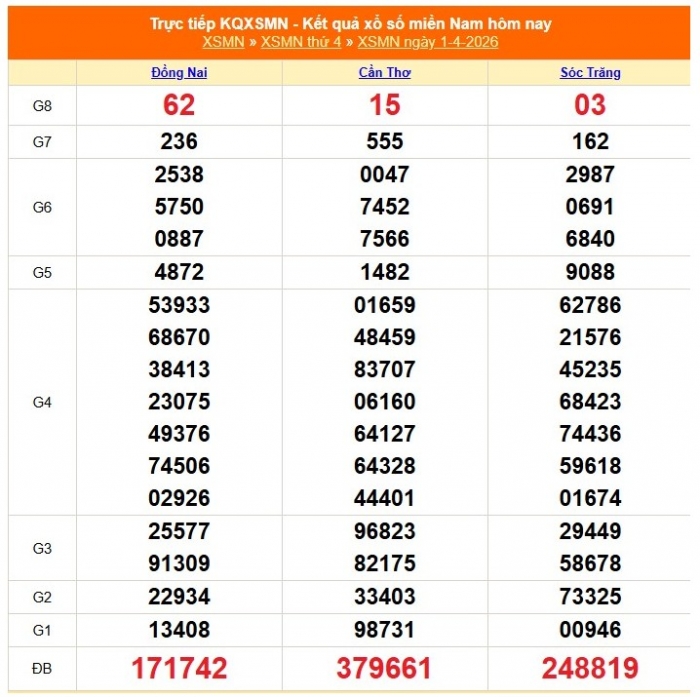 Kết quả xổ số miền Nam ngày 1/4/2026