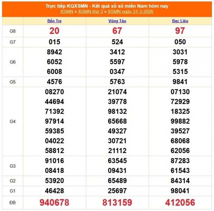 Kết quả xổ số miền Nam ngày 31/3/2026