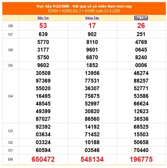 Kết quả xổ số miền Nam ngày 21/4/2026