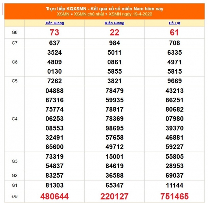 Kết quả xổ số miền Nam ngày 19/4/2026