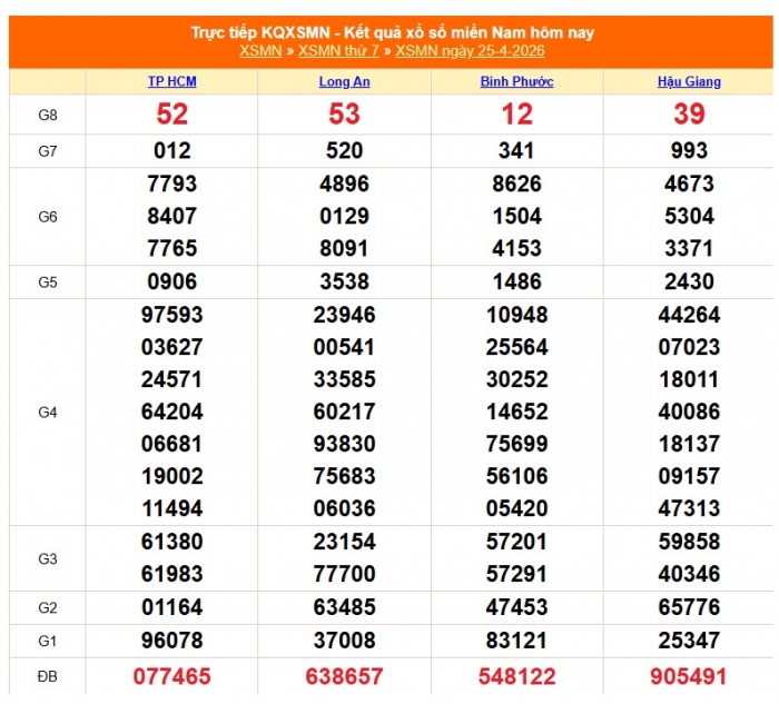 Kết quả xổ số miền Nam ngày 25/4/2026