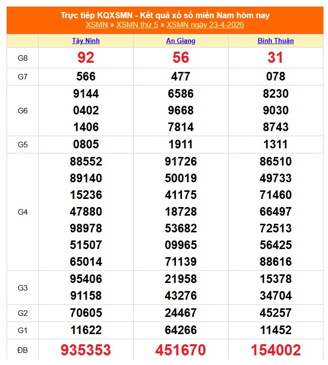 Kết quả xổ số miền Nam ngày 23/4/2026