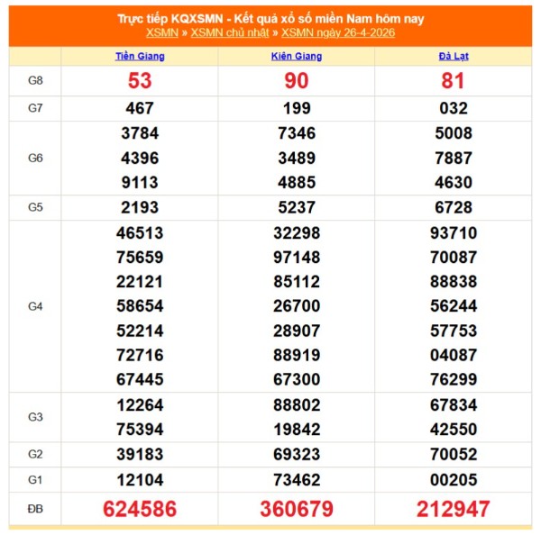 Kết quả xổ số miền Nam ngày 26/4/2026