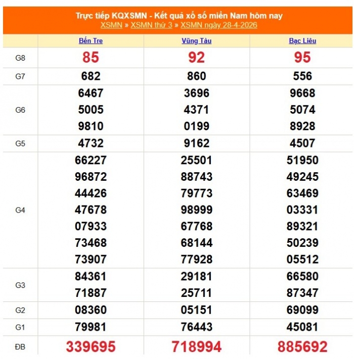 Kết quả xổ số miền Nam ngày 28/4/2026