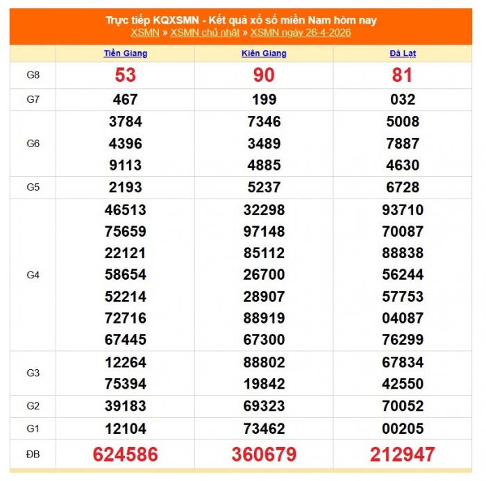 Kết quả xổ số miền Nam ngày 26/4/2026