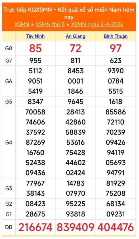 Kết quả xổ số miền Nam ngày 2/4/2026
