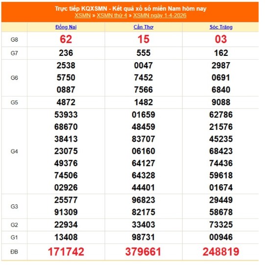 Kết quả xổ số miền Nam ngày 1/4/2026